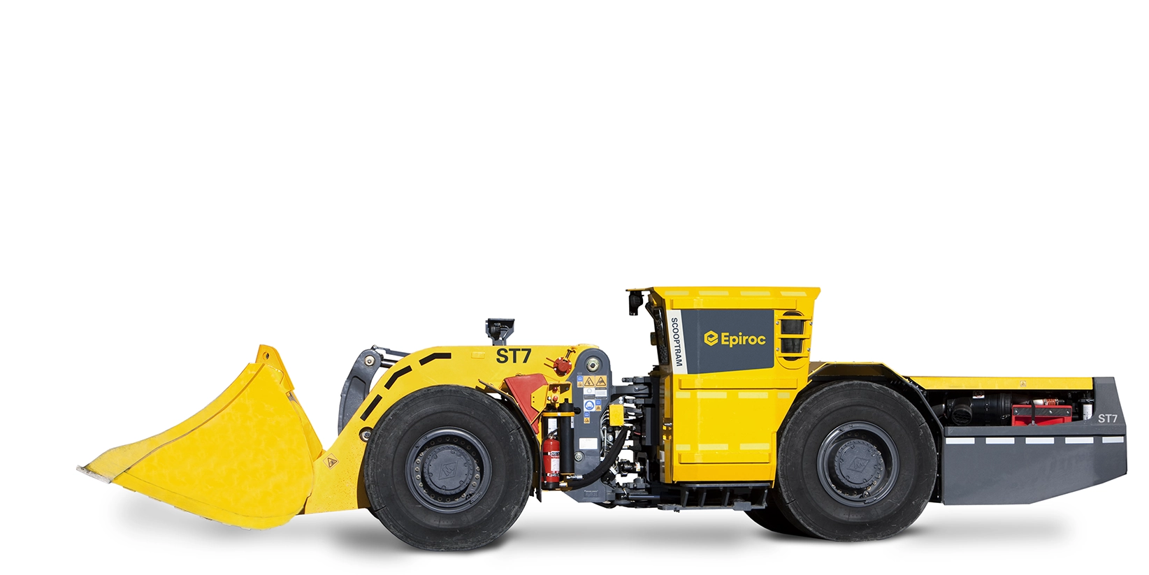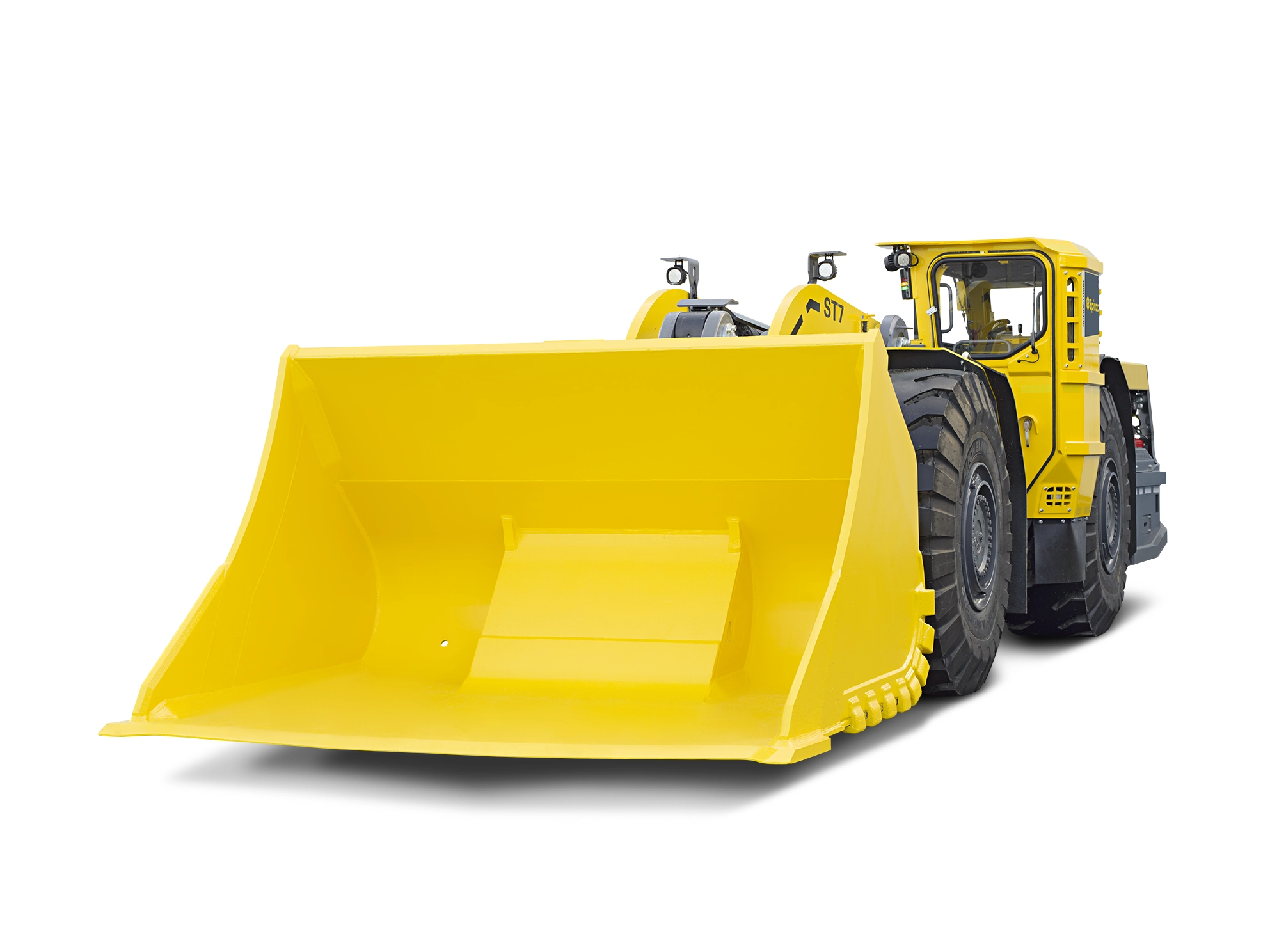 Cargador subterráneo, unidad marca EPIROC, modelo Scooptram ST7, con una capacidad de carga de 6.800 Kg, con motor Cummins, cabina silenciada con certificación ROPS y FOPS.